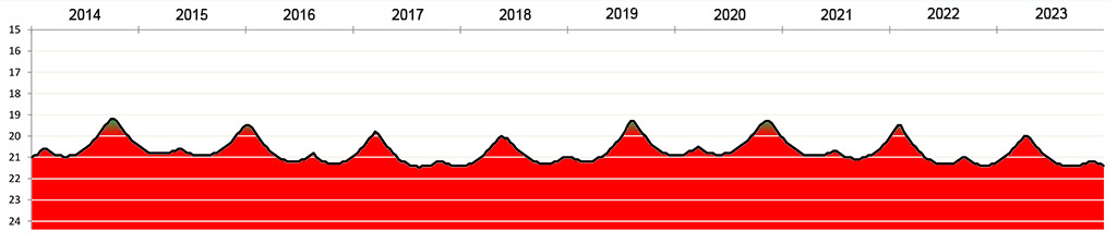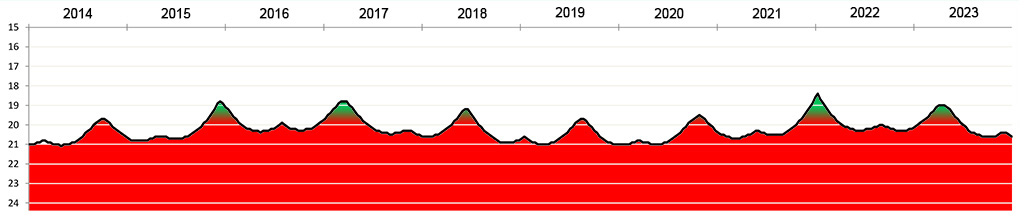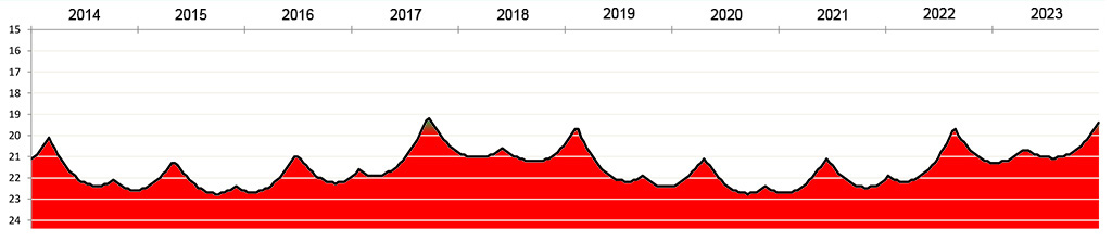 Die Helligkeit des Kleinplaneten (474495) 2003 UH4 zwischen 2014 und 2023.