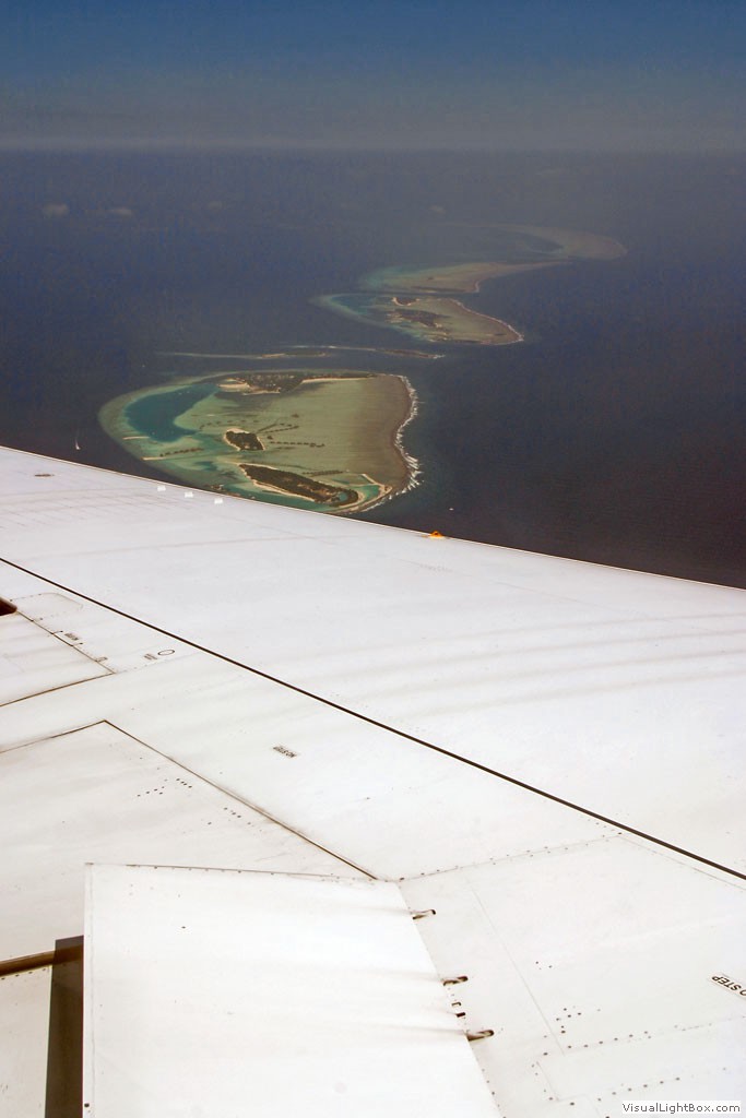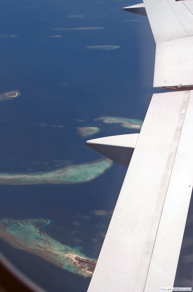Ein erster Blick auf die Malediven bietet sich vom Flugzeug aus...