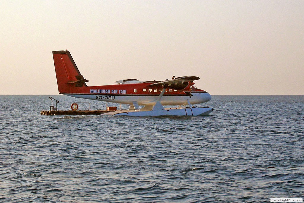 Mit dem Wasserflugzeug geht es weiter auf die Hotel-Insel