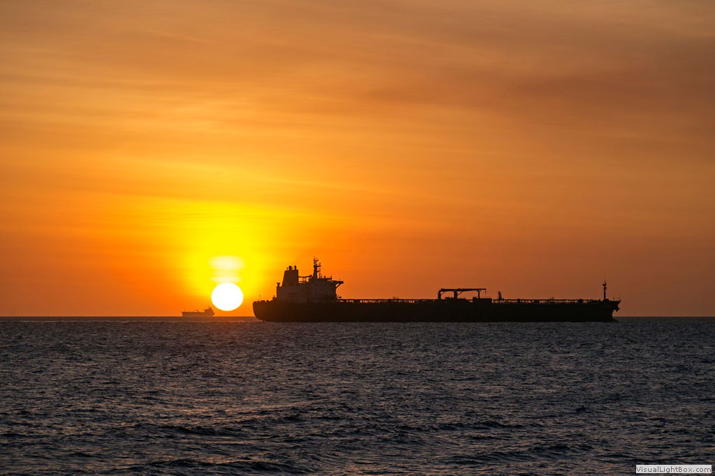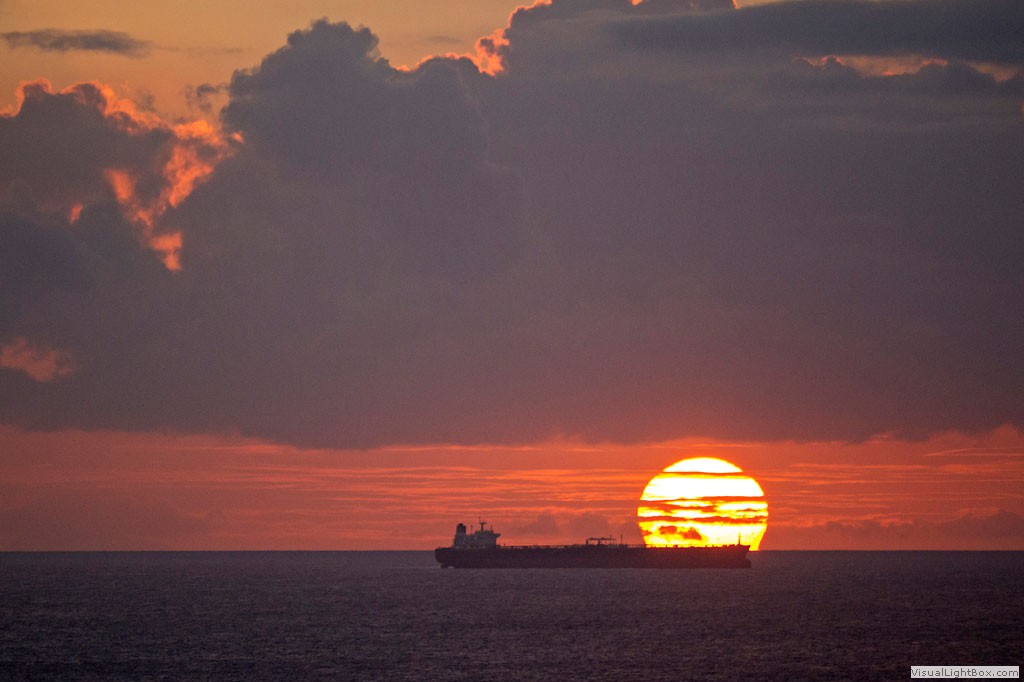 Sonnenuntergang - Der Schatten des ca. 100km entfernten "Sta. Ana Mountain" auf der venezoelanischen Halbinsel "Paraguana"