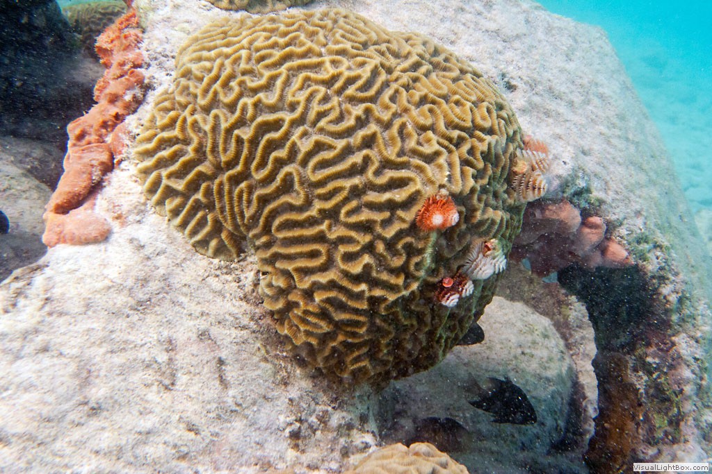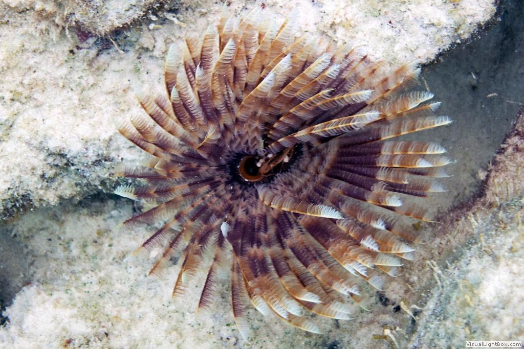 Koralle mit Federwürmern / Weihnachtsbaumwürmern