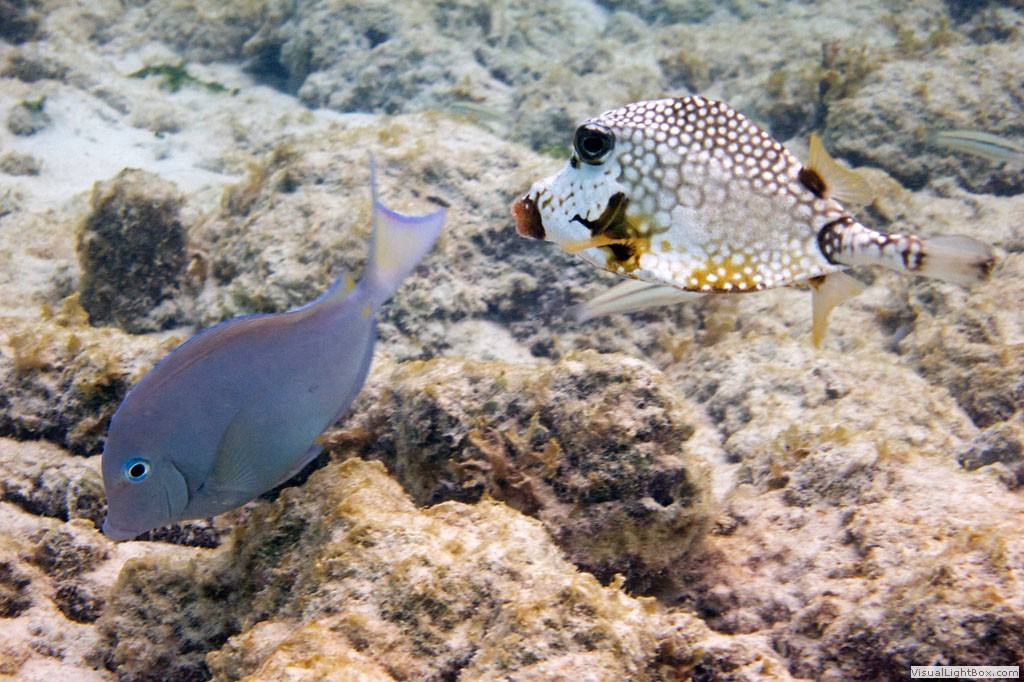 Blauer Doktorfisch + Perlen-Kofferfisch