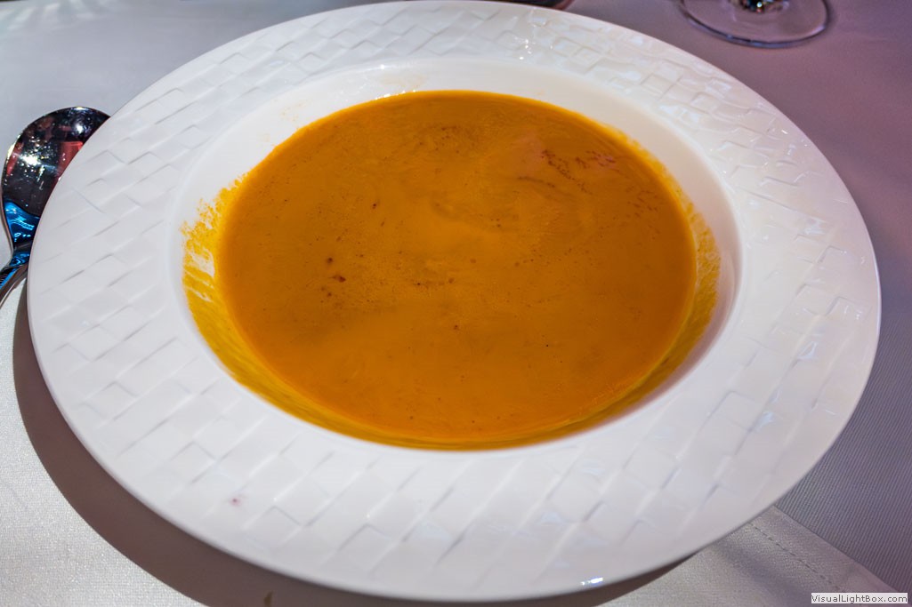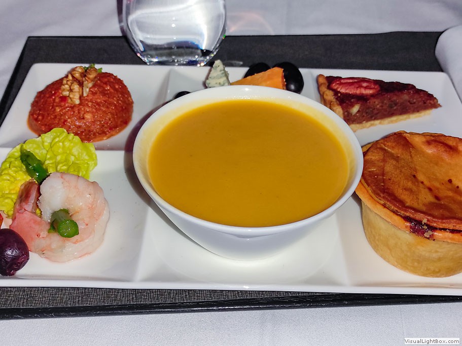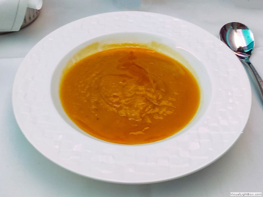 Flug von Frankfurt nach Doha - geräucherte Paprika-Suppe