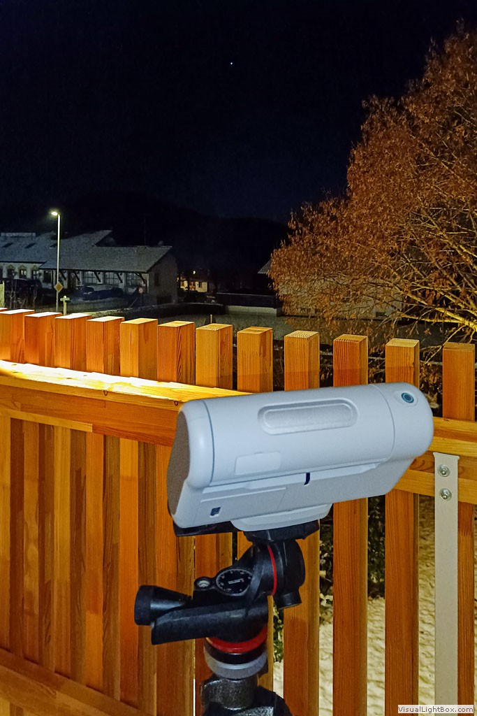 Nachts ist unser "Dwarf II" Smart-Teleskopauf dem Balkon bei der Arbeit