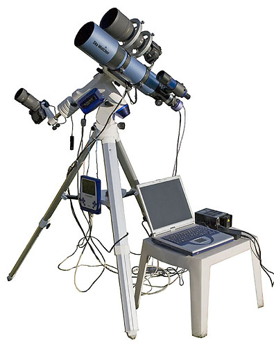 Die von uns ab Dezember 2007 eingesetzte mobile Ausrüstung basiert auf einem 120/600mm-Refraktor auf Sphinx-Montierung. Als Aufnahmeoptik für die mittels Baader ACF-III-Filter modifizierte Canon EOS 350D dient ein auf Blende 5,6 abgeblendetes 300mm/F2,8 APO-Teleobjektiv von Sigma. Die automatische Nachführung erfolgt über eine ALccd 5-Kamera. Beide Kameras werden über ein älteres Celeron-Notebook angesteuert. Bei Bedarf kann noch eine über einen normalen Fernauslöser gesteuerte Kamera an der Gegengewichtsachse befestigt werden.